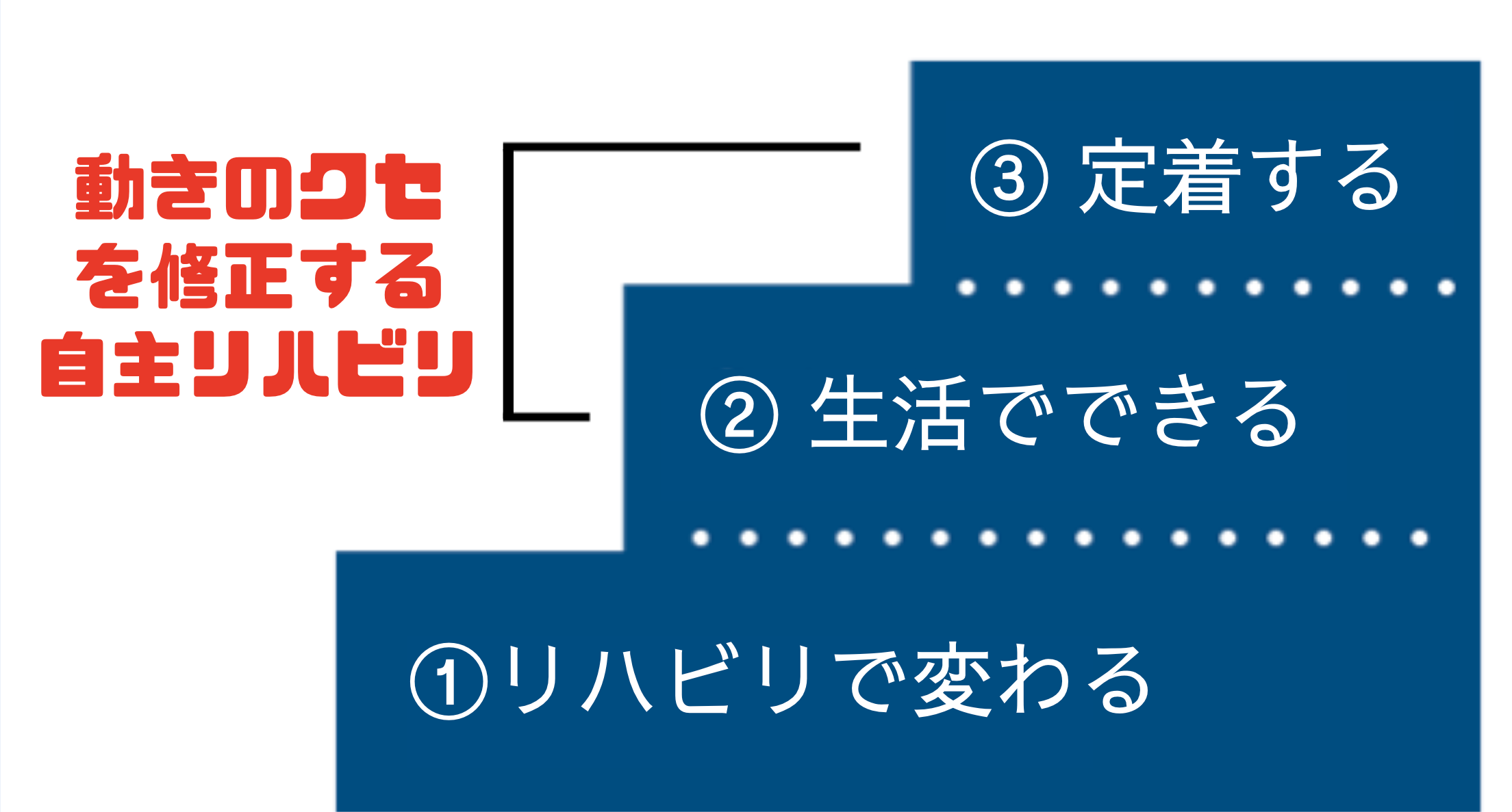 良い動きを生活に根付かせるために、動きのコツを修正する自主リハビリを大切にしています。